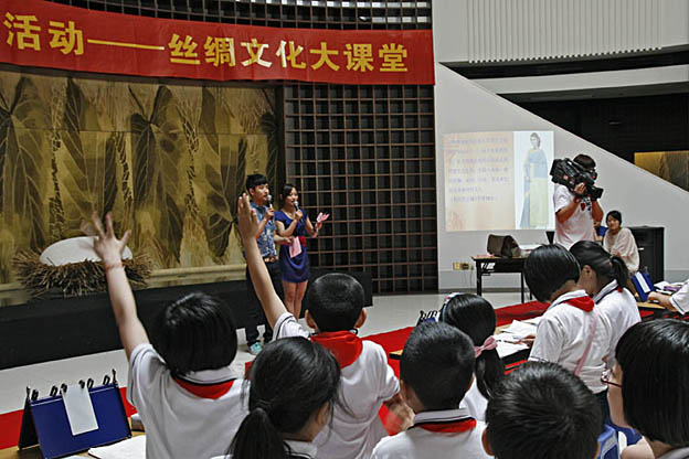 為配合“5.18”國(guó)際博物館日,引導(dǎo)廣大青少年從小探索發(fā)現(xiàn)絲綢歷史記憶、文化知識(shí),5月19日下午,中國(guó)絲綢博物館和浙江少兒頻道聯(lián)合舉辦了“絲綢文化大課堂”活動(dòng),并邀請(qǐng)上城區(qū)天地實(shí)驗(yàn)小學(xué)五年級(jí)的同學(xué)們前來(lái)博物館一起參與。