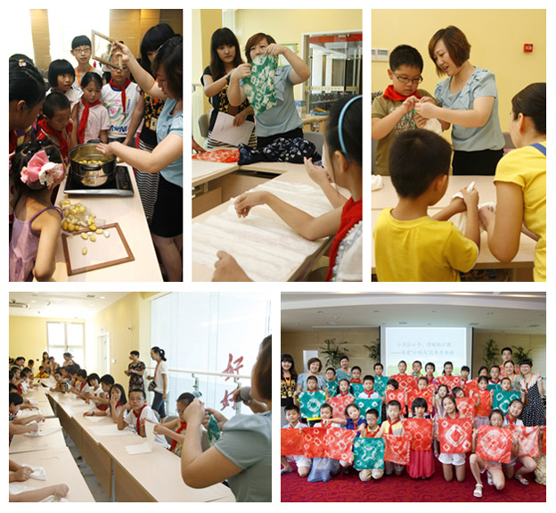 7月29日下午,在杭州少兒圖書(shū)館的活動(dòng)室里,15位杭城戶(hù)籍的小學(xué)生和15位外來(lái)務(wù)工子女共同參加了由中國(guó)絲綢博物館和杭州少兒圖書(shū)館聯(lián)合舉辦的《大手拉小手、情暖杭少圖——關(guān)愛(ài)小候鳥(niǎo)》活動(dòng)。在活動(dòng)中,孩子們互相結(jié)對(duì),快樂(lè)地參與了互動(dòng)游戲,以及觀看了中國(guó)絲綢博物館老師向小朋友們展示的手工繅絲表演,后來(lái)人人動(dòng)手體驗(yàn)了絲綢扎染。