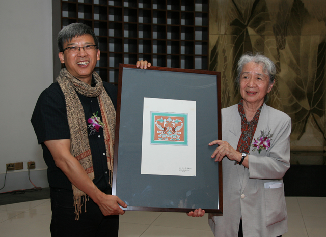 9月14日,“沙鳴花開——敦煌歷代服飾圖案臨摹原稿展”開幕式暨常沙娜、黃能馥、李綿璐作品捐贈儀式在中國絲綢博物館隆重舉行。常沙娜教授應(yīng)邀出席了開幕式,浙江省人大常委會副主任王永明、原全國人大常委毛昭晰、浙江省文化廳廳長楊建新、浙江省文化廳巡視員鮑賢倫、浙江省博物館館長陳浩、浙江省敦煌學(xué)研究會副會長許建平等嘉賓也出席了開幕式。在開幕式上,常沙娜還代表黃能馥和已故的李綿璐,將他們年輕時完成的206張畫作,共近400幅敦煌裝飾紋樣原稿,全部捐贈給了中國絲綢博物館。