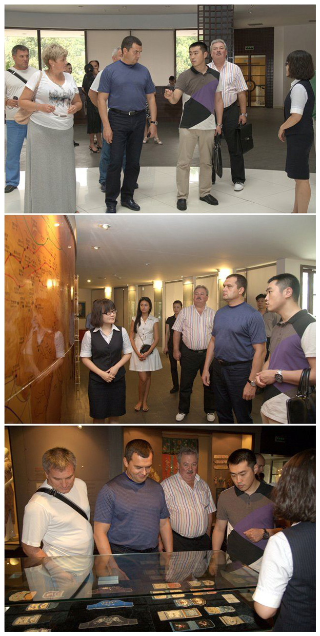 8月30日下午一點(diǎn),應(yīng)國務(wù)委員、公安部部長孟建柱邀請(qǐng),以烏克蘭內(nèi)務(wù)部部長扎哈爾琴科為團(tuán)長的代表團(tuán)一行9人前來我館進(jìn)行參觀。這是烏克蘭代表團(tuán)在浙江的第二天,特意在臨走前想來了解一下中國的絲綢。