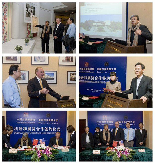 此次雙方簽約的合作項(xiàng)目主要為兩個方面。第一,為促進(jìn)絲綢之路出土紡織品多學(xué)科綜合性研究的發(fā)展,合作開展基于絲綢之路出土紡織品的氫同位素技術(shù)的研究。在合作期間,中方協(xié)助設(shè)計并采集從桑葉到蠶繭織物的不同產(chǎn)地的現(xiàn)代樣品以及提供絲綢之路出土古代紡織品樣品,美方負(fù)責(zé)上述樣品的同位素測定,中方派專業(yè)人員參與到相關(guān)實(shí)驗(yàn)研究中。最后,雙方聯(lián)合舉辦學(xué)術(shù)研討會、學(xué)術(shù)互訪等交流活動,共同完成研究報告,并聯(lián)合署名在高層次國際期刊發(fā)表論文,公布研究成果。第二,為促進(jìn)中國文化在海外的傳播,計劃于2013年10月在美國羅得島州布萊恩特大學(xué)舉辦中國絲綢文化展覽。那時,恰逢中國傳統(tǒng)節(jié)日中秋佳節(jié),也是布萊恩特大學(xué)150年校慶。通過展覽希望使美國民眾對中國絲綢文化的起源、歷史、以及絲綢在生活中的影響能有深入和系統(tǒng)的了解。