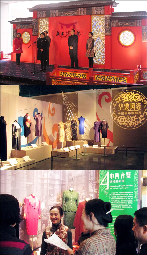 2013年2月1日上午10時,由中國絲綢博物館、福建博物院共同主辦的《華裝風姿·中國百年旗袍展》在福建博物院隆重開幕,此次展覽在福建博物院展出,是繼北京、杭州、東莞巡展后的第四站。為響應(yīng)黨中央的號召,展覽開幕形式從簡,由中國絲綢博物館蔡琴書記和福建博物院吳志躍院長分別致辭,向參加開幕式的觀眾簡要介紹了此展的基本情況。中國絲綢博物館薛雁研究員為參加開幕式的觀眾進行了導(dǎo)覽講解,并接受福建電視臺,福建廣播電臺等多家媒體的采訪。