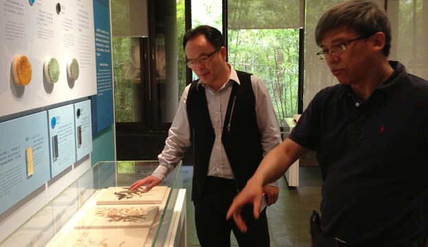 5月23日上午,第十二屆全國人大代表、浙江華之毅時尚集團(tuán)總裁兼浙江雅瑩服裝有限公司董事長張華明先生一行4人來到我館,趙豐館長接待,館長助理張毅陪同進(jìn)行了參觀交流。雙方就中國蠶桑絲織技藝的傳承、保護(hù)及合作進(jìn)行了廣泛的交流,先后參觀了“中國絲綢故事”、“天蠶靈機(jī)——中國蠶桑絲織技藝非物質(zhì)文化遺產(chǎn)”基本陳列和紡織品文物修復(fù)展示館。在參觀過程中,張華明先生對杭羅織造工藝及濮綢等產(chǎn)品表示出強(qiáng)烈興趣,參觀結(jié)束后,就利用土絲等原料開發(fā)新產(chǎn)品,并使之與高級女裝設(shè)計相結(jié)合,與趙館長交流了合作意見。