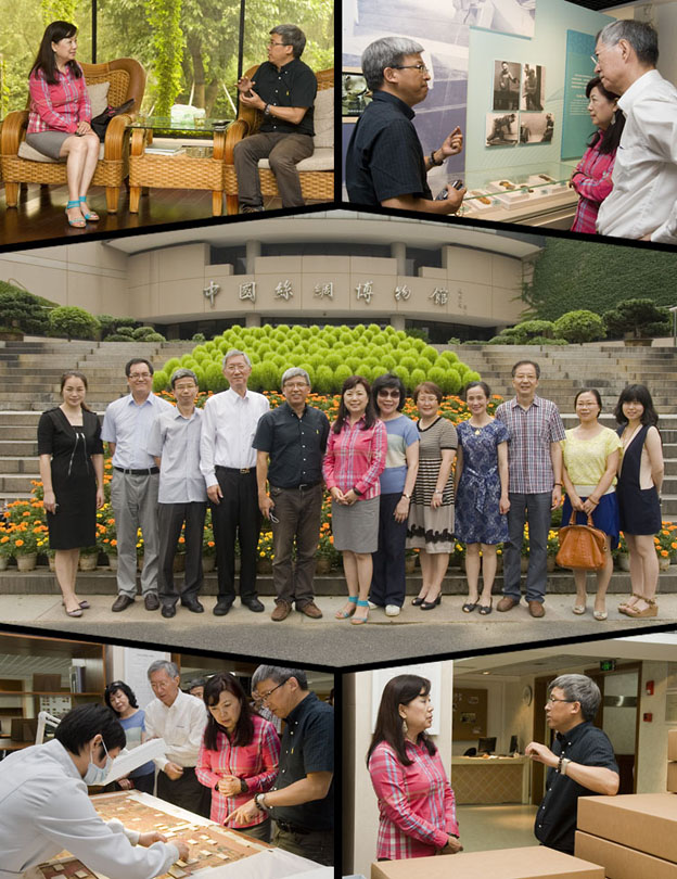 6月25日上午,蔣經(jīng)國三兒媳蔣方智怡女士和她的親朋在浙江省臺(tái)辦工作人員的陪同下來到我館參觀交流。在貴賓室,趙豐館長向蔣方智怡介紹了我館在舉辦旗袍展的各方面情況,特別是在豐富旗袍展品方面,曾收到來自海外友人旗袍的捐贈(zèng)。而面對(duì)此次蔣方智怡女士的來訪,希望能夠得到支持,獲得蔣宋夫人旗袍的展出,從而能夠讓旗袍展展品更具代表性和擴(kuò)大旗袍展的影響力。后來,蔣方智怡女士介紹了蔣宋夫人在社交場合穿著旗袍曾引領(lǐng)當(dāng)時(shí)中國女性著裝的風(fēng)氣以及她在整理蔣宋夫人旗袍方面的工作,趙豐館長表達(dá)了在開展收藏研究保護(hù)方面的合作建議。