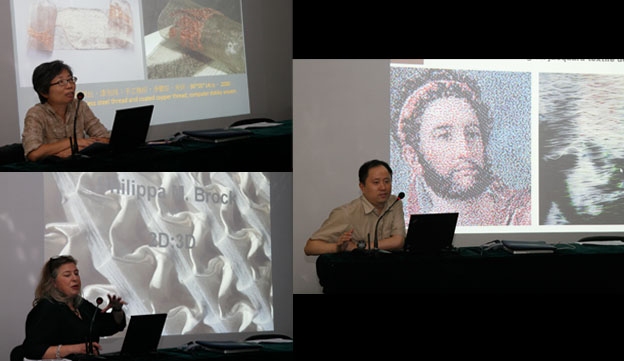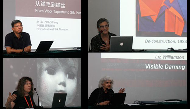 會議由香港理工大學(xué)教授姜綬祥主持,依次演講的有中國絲綢博物館館長趙豐、美國藝術(shù)家莉亞·庫克(Lia Cook)、加拿大藝術(shù)家路易斯·萊米克斯·博魯伯(Louis Lemieux Berube)、澳大利亞藝術(shù)家利茲·威廉姆森(Liz Williamson)、中國臺灣藝術(shù)家黃文英、英國藝術(shù)家菲利帕·布魯克(Philippa Brock)、浙江理工大學(xué)教授周糾。