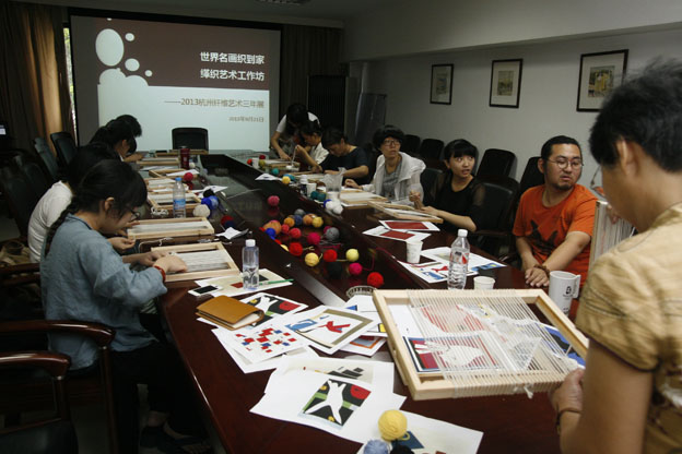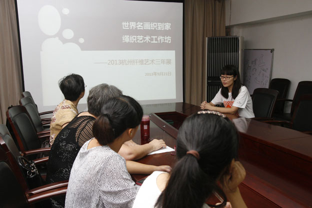 2013年9月22日,是“杭州纖維藝術(shù)三年展”開(kāi)幕的第二天,作為該展覽配套活動(dòng)的“世界名畫(huà)織到家——2013杭州纖維藝術(shù)三年展緙織藝術(shù)工作坊”在中國(guó)絲綢博物館成功舉辦。