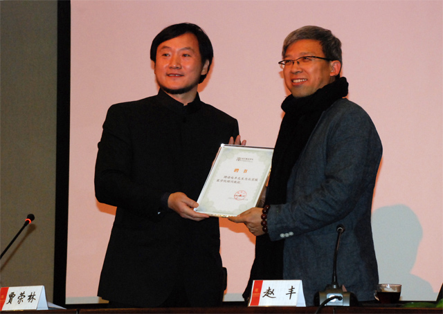 10月22日下午,中國絲綢博物館趙豐館長受聘為北京服裝學(xué)院(以下簡稱北服)顧問教授,并接受北服賈榮林副校長為其頒發(fā)的聘書。趙豐館長表示,受聘為北服的顧問教授非常高興,并希望借此進一步促進中國絲綢博物館與北服之間的學(xué)術(shù)文化交流。