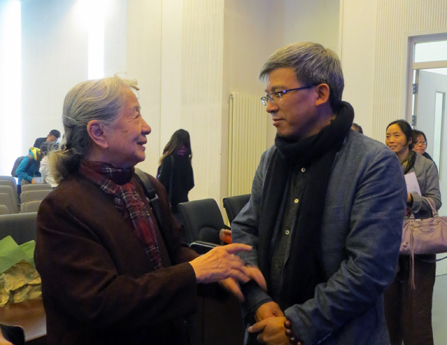 講座結(jié)束后,趙豐館長還與前往北服參加“垂衣裳——敦煌服飾文化展”的常沙娜先生就敦煌絲綢、敦煌壁畫等進行了親切的交談。