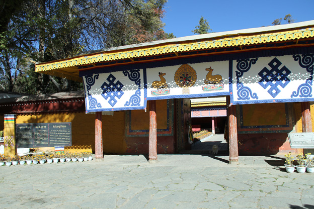 羅布林卡管理處委托的這批紡織品文物主要為各殿堂內(nèi)的各類佛教用紡織品,基本上為原位陳設(shè)??蒲谢卮舜握{(diào)研對羅布林卡各殿堂中陳設(shè)的紡織品特別是三角幡、柱簾、幢幡等開展了原位無損信息提取。基于對格桑頗章內(nèi)紡織品文物原位陳設(shè)及其環(huán)境等的調(diào)查,科研基地重點對格桑頗章內(nèi)的部分紡織品文物進行了病害檢測,顏色、染料檢測,組織結(jié)構(gòu)分析,全方位地采集了紡織品文物信息,進而為保護修復(fù)方案的編制提供了科學(xué)的依據(jù)。格桑頗章是羅布林卡內(nèi)最早的宮殿,為七世達賴?yán)锼?,始建于乾隆年間。