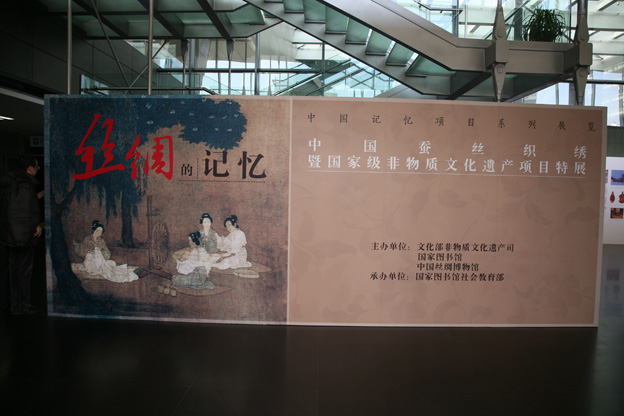 12月30日上午,由文化部非物質(zhì)文化遺產(chǎn)司、國家圖書館和中國絲綢博物館共同主辦的“絲綢的記憶——中國蠶絲織繡暨國家級(jí)非物質(zhì)文化遺產(chǎn)項(xiàng)目特展”在國家圖書館開幕。國家圖書館館長周和平、文化部非物質(zhì)文化遺產(chǎn)司司長馬文輝、中國絲綢博物館館長助理張毅等領(lǐng)導(dǎo)出席了開幕式。開幕式上還舉行了捐贈(zèng)儀式,來自全國的5位國家級(jí)非遺項(xiàng)目代表性傳承人將各自作品捐贈(zèng)國家圖書館。
