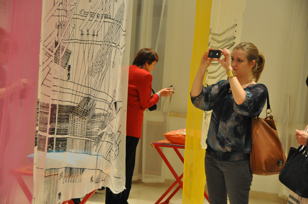 2013年12月5日俄羅斯莫斯科當(dāng)?shù)貢r(shí)間18點(diǎn)30分 “超越歷史與物質(zhì)——中國(guó)當(dāng)代絲綢藝術(shù)展”在莫斯科中國(guó)文化中心隆重開幕。開幕式酒會(huì)上莫斯科中國(guó)文化中心主任張中華公參和全俄裝飾、造型及民族藝術(shù)博物館館長(zhǎng)季托娃女士作了熱情洋溢的致辭并與浙江省文物局李俏副處長(zhǎng)、中國(guó)絲綢博物館研究館員薛雁女士一起共同為展覽開幕剪彩。俄中友好協(xié)會(huì)第一副主席庫(kù)里科娃女士也出席了開幕式。NE·TIGER服裝有限公司精彩的華裝動(dòng)態(tài)秀更將開幕式氣氛引向了高潮。被邀參加開幕式的眾多嘉賓對(duì)來(lái)自浙江的中國(guó)絲綢博物館收藏的46件/組展品產(chǎn)生了濃烈的興趣,對(duì)這些精美的當(dāng)代絲綢作品、服裝以及其工藝贊嘆不已。在刺繡表演現(xiàn)場(chǎng),嘉賓們駐足觀看、仔細(xì)詢問(wèn),贊不絕口。多家新聞媒體紛紛采訪、拍攝報(bào)道,在報(bào)紙、電視上作宣傳推廣并給予高度評(píng)價(jià)。人民畫報(bào)《中國(guó)》雜志、人民日?qǐng)?bào)?人民網(wǎng)等也對(duì)展覽設(shè)計(jì)師鄭巨欣教授進(jìn)行了現(xiàn)場(chǎng)采訪并作報(bào)道。俄羅斯服裝設(shè)計(jì)大師,法國(guó)文學(xué)藝術(shù)騎士勛章獲得者瓦連京·尤達(dá)什金團(tuán)隊(duì)代表6人也于12月4日出席了預(yù)展儀式,并與中國(guó)絲綢博物館專業(yè)人員就相關(guān)專業(yè)問(wèn)題進(jìn)行了友好的交流。