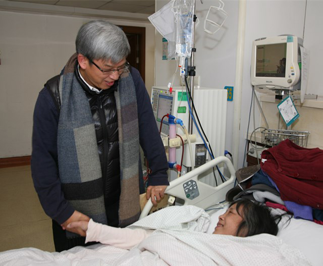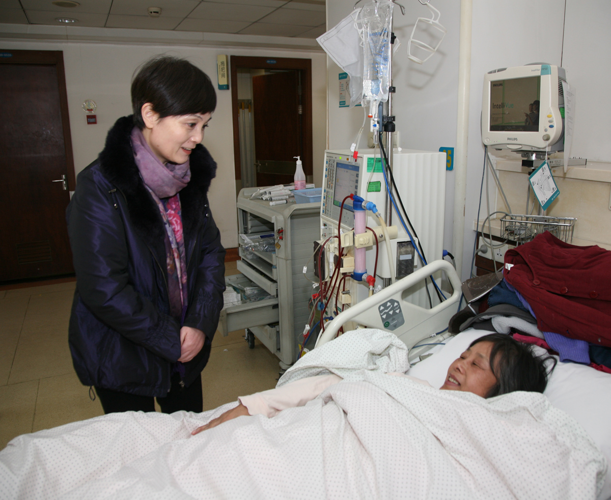 浙江省文化廳副廳長、省文物局局長陳瑤到醫(yī)院慰問中絲博困難職工(2014-01-23)