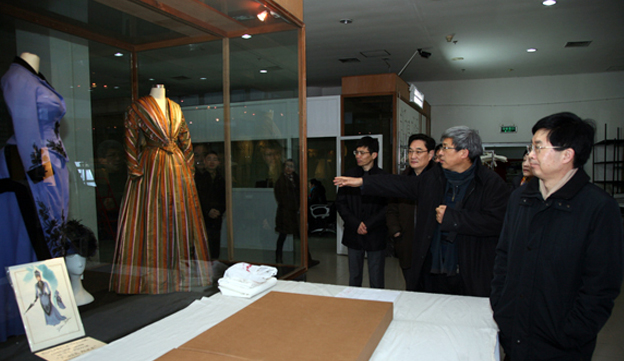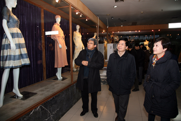 在趙豐館長(zhǎng)陪同下,鄭省長(zhǎng)先后參觀了本館位于教工路的西方時(shí)裝藏品庫(kù)房和紡織品保護(hù)科研大樓。在西方時(shí)裝庫(kù)房,趙豐館長(zhǎng)詳細(xì)介紹了新征集的美國(guó)西方近現(xiàn)代時(shí)裝藏品情況,以及目前整理和保管情況,觀看了部分精品服飾的展示,鄭省長(zhǎng)再次要求管好,用好這批西方時(shí)裝藏品。在紡織品保護(hù)科研大樓,趙豐館長(zhǎng)介紹了紡織品保護(hù)科研及成果情況,鄭省長(zhǎng)看望了現(xiàn)場(chǎng)的科研人員,重點(diǎn)參觀了檢測(cè)分析室,了解液質(zhì)聯(lián)用儀、激光共聚焦顯微鏡等儀器設(shè)備的功能情況。