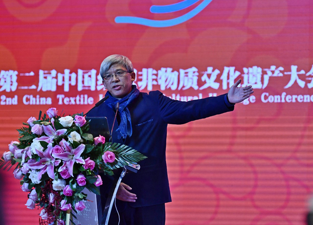 會議由中國紡織工業(yè)聯(lián)合會副會長孫淮濱主持,文化和旅游部非遺司副司長王晨陽致辭,孫瑞哲會長作題為“構(gòu)建紡織非遺發(fā)展命運(yùn)共同體”的主旨報(bào)告。他提出,在全世界倡導(dǎo)“人類命運(yùn)共同體”的時代背景下,非物質(zhì)文化遺產(chǎn)作為人類文明發(fā)展共同的財(cái)富,需要以更加開放和全球化的視野看待它的保護(hù)與傳承,所以,孫會長就新時代紡織非遺傳承與發(fā)展事業(yè),與大家從新使命、新目標(biāo)、新觀念以及新路徑四個方面展開了探討。