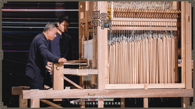 國絲館此次借船出海,登上央視舞臺,離不開各級文物局以及兄弟單位的大力支持和鼎力合作。自2013年初四川成都老官山漢墓西漢提花織機模型的出土,在成都文物考古研究院和荊州文物保護(hù)中心的發(fā)掘測繪和精心保護(hù)下,我們才能得到四臺織機模型的詳細(xì)數(shù)據(jù)和具體細(xì)節(jié)。國家文物局高度重視,委托中國絲綢博物館承擔(dān)“漢代提花技術(shù)復(fù)原研究與展示——以成都老官山漢墓出土織機為例”的指南針計劃專項項目,此項目聯(lián)合成都博物館、中國科學(xué)院自然科學(xué)史研究所、浙江工業(yè)大學(xué)之江學(xué)院等機構(gòu),復(fù)原了西漢時期的勾綜式提花機以及織造技術(shù)。這一研究解決了漢代織機的類型問題,為漢代織錦的原技術(shù)原工藝復(fù)制提供了堅實的基礎(chǔ)。成果于2015年公布,之后發(fā)表在國際知名專業(yè)學(xué)刊《古物Antiquity》上,引起了世界各地考古和科技史同行的關(guān)注和轉(zhuǎn)載。