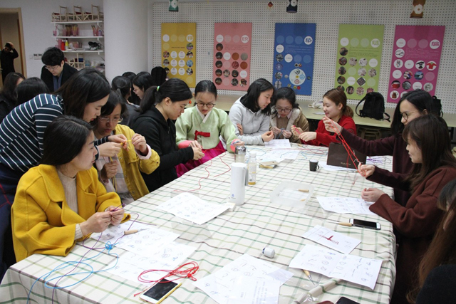 3月30日,為了配合“一衣帶水: 韓國傳統(tǒng)服飾與織物展”,國絲館的另一社教品牌——女紅傳習(xí)館也特別開展了“蜻蜓結(jié)”與“韓國拼布”工作坊,使觀眾在韓國傳統(tǒng)文化大學(xué)老師的指導(dǎo)下,學(xué)習(xí)、了解了韓國的傳統(tǒng)服飾文化與手工藝。