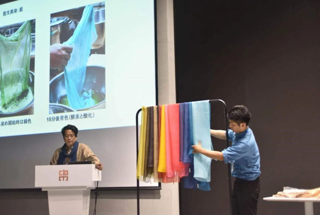 日本草木染的重要代表人物山崎和樹博士在研討會(huì)上作題為《日本江戶時(shí)代的染色—染料與染色技法》的報(bào)告,介紹江戶時(shí)期常用的天然染料和媒染劑品種,可染得當(dāng)時(shí)常見的七種顏色