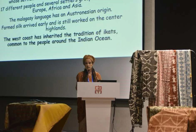 來(lái)自馬達(dá)加斯加的Andrée Etheve 女士呈現(xiàn)了印度洋上非洲島國(guó)特有的天然染料、顏料、織造纖維和扎經(jīng)染色工藝