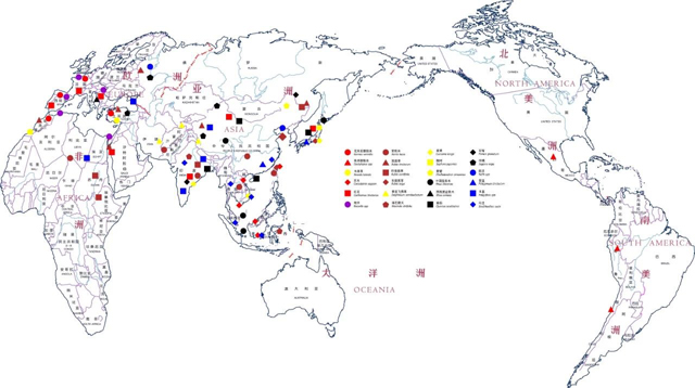 此外,為了幫助參觀者更加清晰、系統(tǒng)地了解這一時(shí)期歐亞天然染料的使用情況,策展團(tuán)隊(duì)還特別繪制了地圖,明確各類天然染料在世界范圍內(nèi)存在、分布的地區(qū),并將其放置在展覽結(jié)束部分,輔助觀眾立體、直觀地了解染料的分布使用情況。