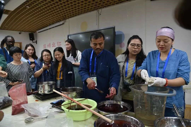 依據(jù)報(bào)名情況的不同,世界天然染色工作坊持續(xù)開展了3天,每天舉辦4場(chǎng)主題活動(dòng),根據(jù)實(shí)際報(bào)名情況,分為“印度傳統(tǒng)染色工坊”、“日本天然染色工坊”、“乾隆色譜復(fù)原演示工坊”、“云南白族扎染工坊”、“非洲礦物泥染工坊”、“印度傳統(tǒng)扎染”、“浙南夾纈工坊”、“傳統(tǒng)藍(lán)染工坊”、“泰國(guó)傳統(tǒng)染色工坊”、“秘魯天然染色工坊”、“南通灰纈藍(lán)印工坊”、“貴州蠟纈”十二大主題,由專業(yè)老師、研究者授課講述,參與者也能實(shí)際動(dòng)手參與制作。