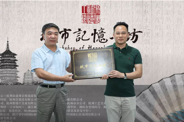 杭州市旅游形象推廣中心主任葉虹為首批杭州“城市記憶工坊”特聘導(dǎo)師代表頒發(fā)證書