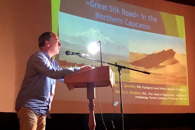 9月24日上午,學(xué)術(shù)研討會(huì)在俄羅斯基茲洛沃茨克市正式開幕。2019年IASSRT輪值主席、俄羅斯斯塔夫羅波爾考古所高級(jí)研究員多德·茲維茲達(dá)納首先對(duì)大家的到來表示歡迎,基茲洛沃茨克市副市長(zhǎng)塔蒂亞娜·扎古梅納亞,斯塔夫羅波爾考古所代表伊戈·沃羅寧,國(guó)際絲路之綢研究聯(lián)盟主席、中國(guó)絲綢博物館館長(zhǎng)趙豐,五山城歷史博物館館長(zhǎng)謝爾蓋·薩文科,基茲洛沃茨克市歷史博物館館長(zhǎng)謝爾蓋·盧津分別致辭。