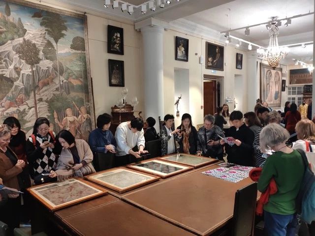 1.紡織品研究實(shí)地考察與交流。代表們考察了艾爾米塔什博物館,在研究員及策展人瑪麗亞·門什科娃、娜塔莉婭·薩蒂亞吉娜、斯維特拉娜·潘科娃的導(dǎo)覽下,重點(diǎn)交流了巴澤雷克遺址、諾音烏拉遺址、莫謝瓦亞·巴勒卡遺址以及敦煌的紡織品考古及保護(hù);考察了基茲洛沃茨克市歷史博物館的“歷史記憶中的阿德赫女性世界”展和“高加索傳統(tǒng)服飾的形成歷史”展,并體驗(yàn)了北高加索地區(qū)傳統(tǒng)金線繡及毛氈制作的工作坊,與工藝傳承人賽達(dá)·普西諾、埃琳娜·特萊索娃等進(jìn)行了深入的實(shí)踐交流;考察了卡拉恰伊-切爾斯克共和國(guó)歷史文化與自然博物館,為中國(guó)絲綢博物館和斯塔夫羅波爾考古所合作共同成立的“紡織品文物保護(hù)國(guó)家重點(diǎn)科研基地·北高加索站”舉行揭牌儀式,并參觀、交流了包含中俄兩國(guó)修復(fù)師共同修復(fù)的兩件蒙古長(zhǎng)袍在內(nèi)的紡織品修復(fù)展示;考察阿克西茲和卡拉恰伊山谷巖石墓遺址和古阿蘭人遺址,阿蘭人及其建立的游牧王國(guó)阿蘭聊為這一段絲綢之路的興衰演變、文明交流提供了縮影;考察了國(guó)立羅蒙索諾夫大學(xué)博物館,參觀了展覽,研究了特意從庫(kù)房中提取的部分紡織物藏品,與當(dāng)?shù)貙W(xué)者進(jìn)行了深入的交流;考察了國(guó)立歷史博物館,深入了解了目前俄羅斯關(guān)于絲路北道的考古學(xué)、民俗學(xué)研究成果。