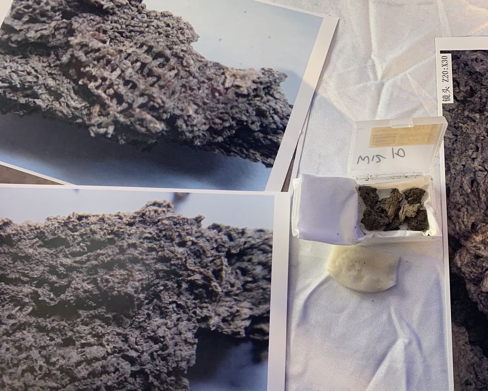 這是甕棺中發(fā)現(xiàn)的碳化紡織品。受訪者供圖