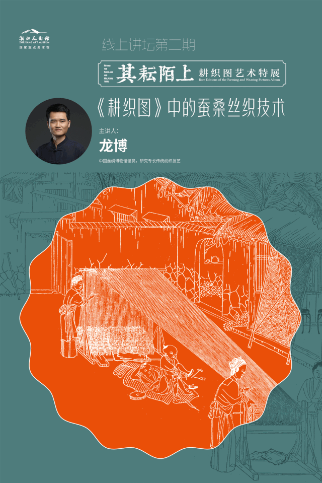 驚蟄亦是一個(gè)和百蟲相關(guān)的節(jié)氣,民諺有“二月驚蟄抱蠶子”的說(shuō)法,是說(shuō)從這天開始,蠶卵準(zhǔn)備孵化,待到樹葉漸成濃蔭時(shí),蠶兒剛好孵出。因此本期“線上講壇”我們將聚焦《耕織圖》中“織”的部分,由中國(guó)絲綢博物館館員龍博先生,結(jié)合“其耘陌上——耕織圖藝術(shù)特展”中的部分作品,詳細(xì)解讀《耕織圖》中的蠶桑絲織技術(shù)。