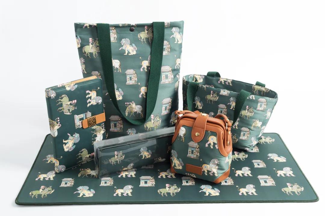 此套產(chǎn)品以中國絲綢博物館館藏文物“唐翼馬紋錦”、“唐立獅寶花紋錦”為靈感來源?!耙眈R紋”造型深受波斯,粟特藝術中翼馬的影響。隨著絲綢之路的開通,翼馬紋、獅子紋也逐漸成為唐代織錦中的典型圖案。
