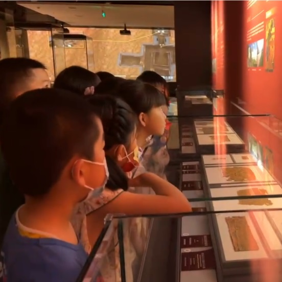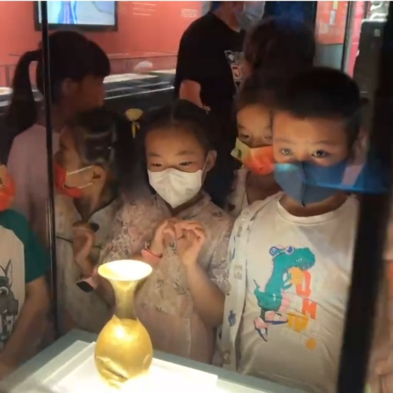 本次活動(dòng)還充分利用本館沉浸式5G數(shù)字體驗(yàn)區(qū),借助動(dòng)畫復(fù)原場(chǎng)景帶領(lǐng)大家穿越到青海古道,一覽古絲路上的貿(mào)易盛況。作為古絲綢之路南線的重要通道,青海道是6至8世紀(jì)絲綢之路最為繁榮的干道之一,也因此出土了眾多兼具學(xué)術(shù)價(jià)值和觀賞效果的文物。在展廳中,胡人牽駝模印磚、波斯銀壺、陶錢范、波斯銀幣……等文物作為古絲綢之路的貿(mào)易見證,是大家藝術(shù)創(chuàng)作最重要的靈感來源。