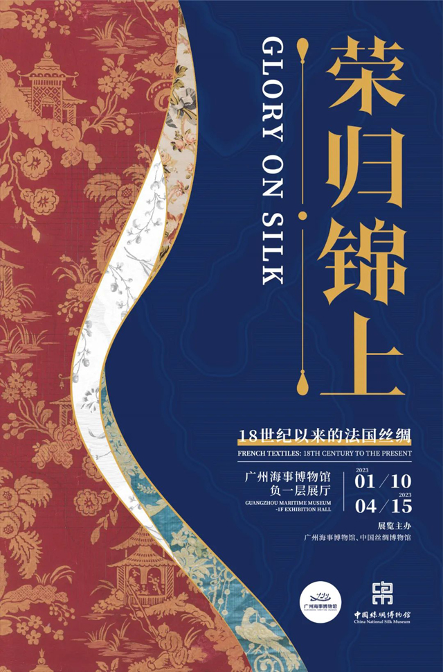 2023年1月10日,由中國絲綢博物館和廣州海事博物館共同舉辦的“榮歸錦上:18世紀(jì)以來的法國絲綢”展在廣州海事博物館負(fù)一樓4號展廳隆重展出。