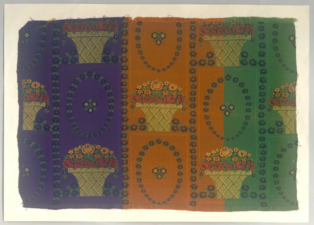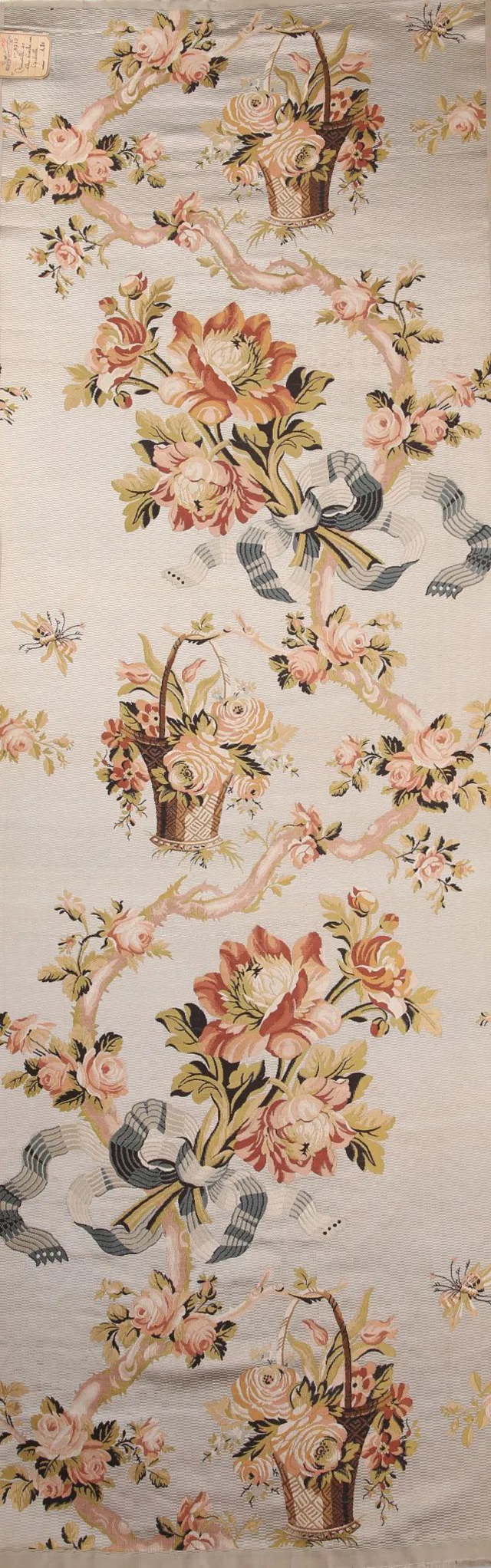 法國粉地花束花籃獨(dú)幅妝花綢