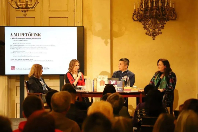 三、3月16日,“從裴多菲說起——中匈詩歌對(duì)話”在布達(dá)佩斯文學(xué)博物館舉行。匈牙利中國文學(xué)作品翻譯家博莉·克拉拉主持,帕茲馬尼大學(xué)中文系漢學(xué)家奇布勞·蘇珊娜、匈牙利文學(xué)史學(xué)家吉邁?!ぐ_~謝和文學(xué)翻譯家、裴多菲研究者和翻譯家李震參與對(duì)話。此次活動(dòng)由布達(dá)佩斯中國文化中心與裴多菲文學(xué)博物館聯(lián)合舉辦。