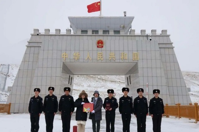 2月6日,新疆出入境邊防檢查總站紅其拉甫出入境邊防檢查站向中國絲綢博物館捐贈收藏品的儀式在紅其拉甫國門下舉行,來自中國絲綢博物館的工作人員從浙江橫跨5000余公里,來到祖國最西端的帕米爾高原進(jìn)行收藏品交接。