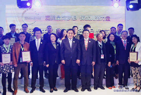 中國紡織工業(yè)聯(lián)合會領(lǐng)導為獲獎企業(yè)頒獎