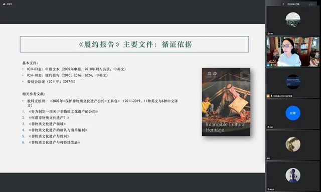 巴莫曲布嫫研究員以《申遺與履約:非物質文化遺產國際合作機制與中國實踐》為題,介紹非遺保護的國際合作機制、中國為確保非遺存續(xù)力實施中國實踐的案例情況,并指出聯盟需要密切跟蹤《公約》的發(fā)展,貫徹可持續(xù)發(fā)展原則。在非遺名錄申報成功后還需履行定期報告的義務,并分享撰寫履約報告可依循的文件。