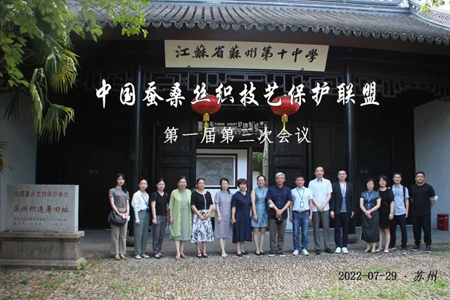 7月29日至30日,由文化和旅游部非遺司指導、中國蠶桑絲織技藝保護聯盟主辦、蘇州絲綢博物館承辦的中國蠶桑絲織技藝保護聯盟第一屆第三次會議在蘇州召開。浙江省文化和旅游廳非遺處四級調研員薛建,江蘇省非物質文化遺產保護中心辦公室副主任宣治,中國蠶桑絲織技藝保護聯盟主席、中國絲綢博物館名譽館長趙豐,蘇州市文化廣電和旅游局黨組成員、總工程師曹俊,非遺處處長李紅,蘇州市非遺保護管理辦公室副主任王艷以及聯盟成員單位代表共30余人參加會議。