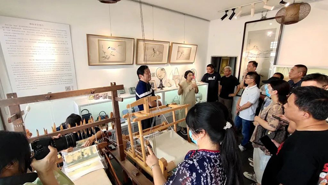 會議的考察環(huán)節(jié)包括參觀學習蘇州織造署舊址、蘇州絲綢博物館、蘇州中國絲綢檔案館、蘇州博物館、蘇州禎彩堂緙絲工作坊、蘇州紗羅技藝館等紡織類非遺的文化場館和保護單位。聯盟成員們在了解這些場所開展非遺的保護、傳承、宣傳和創(chuàng)新工作之外,還開展了深入的交流學習和實踐探討。