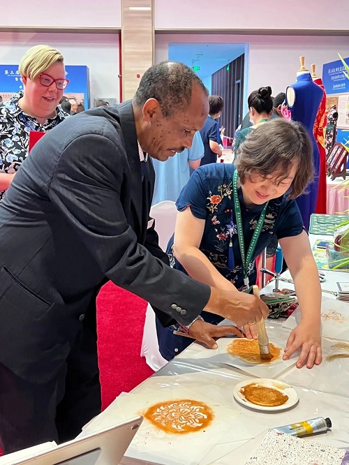 為講好中華優(yōu)秀傳統(tǒng)文化故事,推動中華文化更好走向世界,大會特別舉辦了以中國非遺為主題的中華傳統(tǒng)文化展示,中國絲綢博物館受邀圍繞“中國蠶桑絲織技藝”非物質文化遺產作互動展示,吸引了眾多中外來賓的關注和參與。