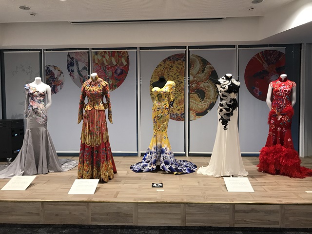 In Craftsmanship part, visitors saw a varies of silk weaving techniques. Through hand painting, printing and dyeing, embroidery and other skills, Yun Brocade, Shu Brocade, Song Brocade and other ethnic brocade such as Zhuang Brocade was used in the modern fashion design, allowing visitors to see the crystallization of Chinese wisdom from thousand years ago. Cloud Shoulder with Swing Hem Coat and Phoenix-tail Skirt as a Chinese traditional wedding costume grabbed visitors’ attention. It has double-layered cloud shoulder and swing hem that inspired by Chinese ancient architecture. The designer Guo Pei is the first generation of Chinese designer, and also the earliest haute couture designer in China.