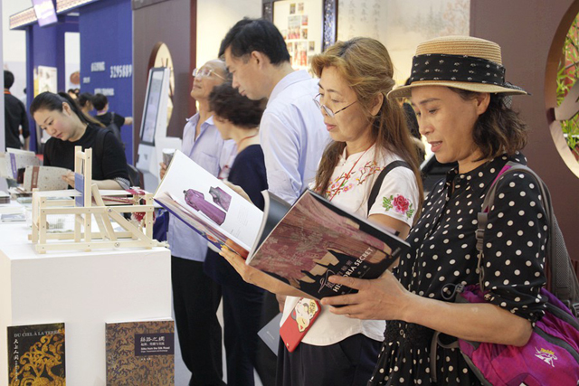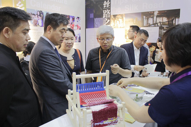 In the afternoon, leaders such as Guan qiang, the deputy director of State Administration of Cultural Heritage, Luo jing, the inspector of Museum and Socual Relics Department and Cao Hong, the deputy director of the Cultural Heritage Bureau of Zhejiang Province, came to the booth of China National Silk Museum. They listened with great interest to the detailed introduction about the social education works of China National Silk Museum and gave full recognition to the social education activities that we had carried out based on our own characteristics.