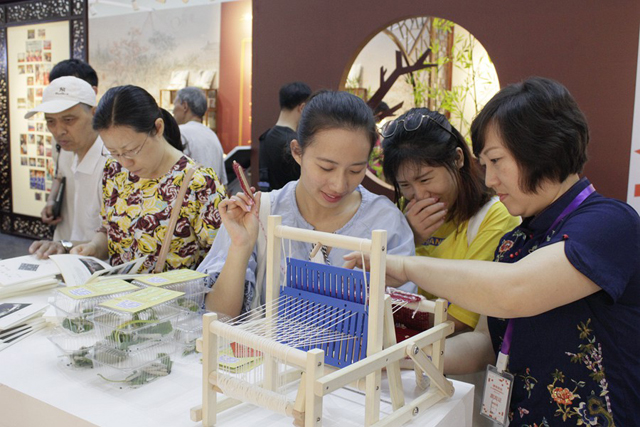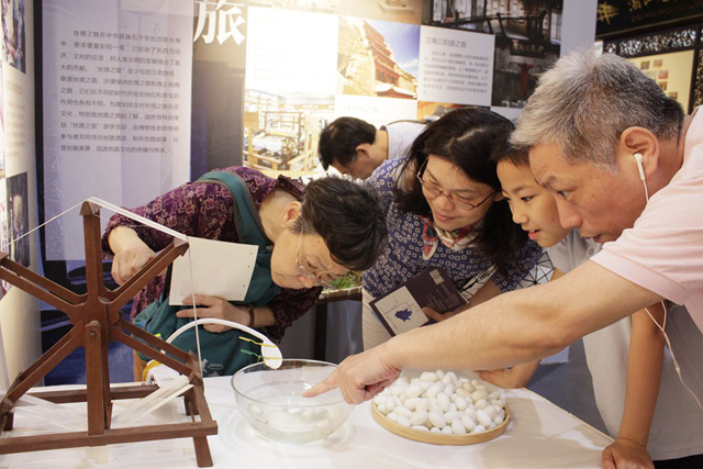As one of the exhibitors of the Expo, China National Silk Museum had the theme of "let the cultural relics live and make lives better". Through the illustrated exhibitions, wonderful videos and abundant exhibits, three social education brands "Silk Road Night", "Textile Training", "Silkworm Culture", and the planned social education project "Silk Road Journey" were introduced and displayed. Through showing the live silkworm rearing, the silk reeling and the loom operation, the technological process of silk production was displayed to the audience intuitively. On the first day, the colorful activities attracted many audiences.