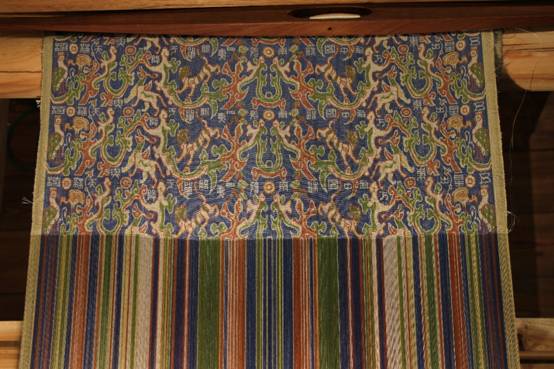 More importantly, NSM decided to replicate "wu xing" jin-silk by the pattern loom which was restored based on the loom model of the Han Dynasty unearthed from the Han Tomb of Laoguanshan in Chengdu, Sichuan Province. In February 2017, Luo Qun led his team to begin the work of drafting and weaving on the loom. After more than one years, the work of drafting has been completed by using 10470 warps, 84 pattern heddles and 2 ground heddles. After the complex drafting finished, carried on the weaving, finally successfully replicated "wu xing" jin-silk.