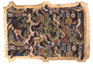 In 1995, the Niya Archaeological team discovered "wu xing" jin-silk at Tomb 8 of Nia No.1 Cemetery, causing a great sensation. Chinese Silk also invited the unearthed relics of Niya including "wu xing" jin-silk to be exhibited in Hangzhou in 2000 by holding a special exhibition. During the exhibition, the curator Zhao Feng based on the research of Captain Yu Zhiyong of the Niya Archaeological team, restored the pattern of "wu xing" jin-silk and obtained preliminary results.