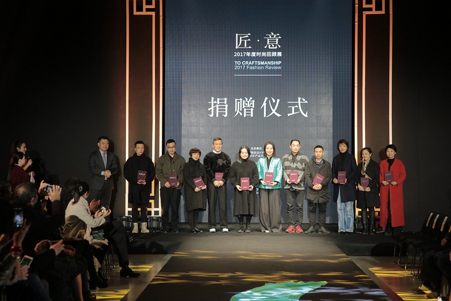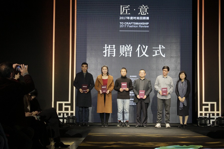 自2011年以來,中國絲綢博物館每年關注中國時尚的發(fā)展進程,通過收藏當年的典型服裝和流行面料,梳理當年的時尚潮流,展示當年的時尚生活,策劃以服飾和面料為中心的年度時尚回顧展。在2017年作品入藏捐贈儀式上,中國服裝設計師協(xié)會主席張慶輝、浙江省文物局局長柳河、國家紡織產品開發(fā)中心主任李斌紅分別為設計師代表、服裝企業(yè)代表及面料企業(yè)代表頒發(fā)收藏證書。
