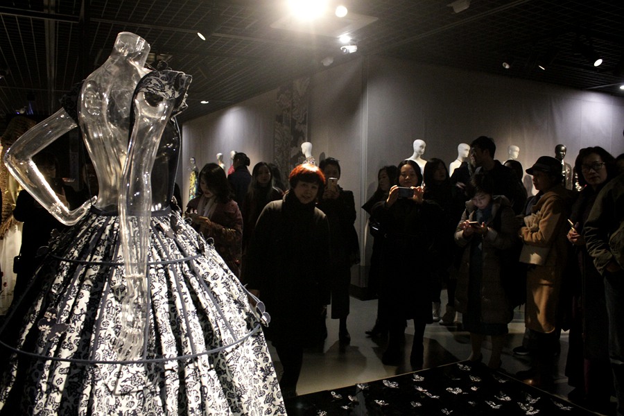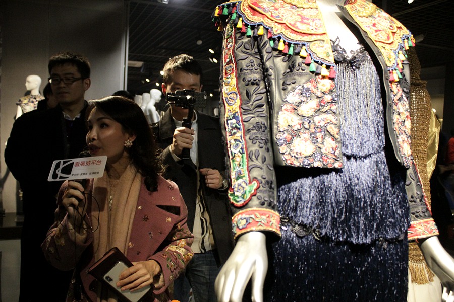 時尚秀演結束后,嘉賓們在策展人陳百超的帶領下參觀了“匠·意——2017年度時尚回顧展”。