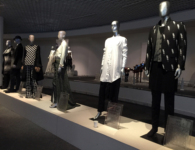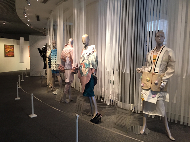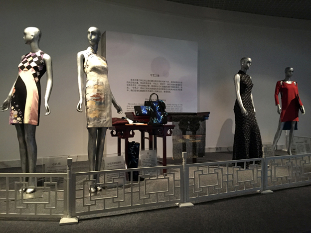 第五部分“守藝之港”,作品以中國(guó)傳統(tǒng)元素的創(chuàng)新設(shè)計(jì)為主,展有作品近三十件,展出2014年“金頂獎(jiǎng)”得主潘怡良及馬凱、薄濤、蘭玉、馬德帆等知名設(shè)計(jì)師的最新作品以及傳統(tǒng)的莨紗綢、提花羅、西陣織等面料。“守藝人”將自己的時(shí)光留在對(duì)這些聯(lián)接過(guò)去和未來(lái)的藝術(shù)探索中,我們?cè)谒麄兇罱ǖ乃囆g(shù)廊橋上回眸過(guò)去,享受現(xiàn)在。