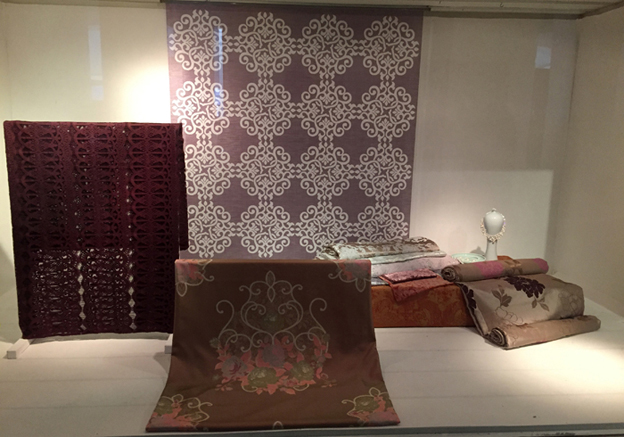 第三部分“印象纖維”,展出有色彩斑斕、純凈素雅等幾組不同風(fēng)格的面料集合,展示了國(guó)內(nèi)外企業(yè)生產(chǎn)的服裝面料、家紡面料、床上用品四十余件。其中有2014北京APEC會(huì)議領(lǐng)導(dǎo)人定制服裝面料,有2014具有代表性的流行服裝面料和家紡面料,還有國(guó)內(nèi)外知名設(shè)計(jì)師設(shè)計(jì)的絲巾等。
