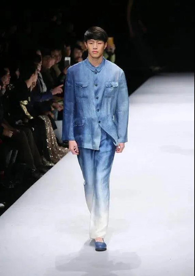 所以這系列作品就是我對(duì)這種東方意境的把握,中間這件服裝沒有任何省道,它既不是傳統(tǒng)的二維造型,又不是西方的三維合體造型,它就是一塊布,但這種斜肩款穿上身之后,會(huì)出現(xiàn)自由的垂落線條。加上定位染的漸變,反映了一種動(dòng)感和一種情緒。右邊這件合體的衣服它是一件旗袍,保留了民國旗袍的基本形制,但在顏色、面料上全部做改變。服裝上的洞洞是撕破的肌理,是(我)玩(材料)的一種狀態(tài)(呈現(xiàn))。這系列三件作品從外觀上看是不一樣,但是內(nèi)核是一樣的,而且它們是一種互補(bǔ):動(dòng)感與安靜,寫實(shí)與寫意。我希望從材料、從表達(dá)上都有創(chuàng)新的思維和原創(chuàng)的手法,打動(dòng)自己之外還能打動(dòng)觀眾并引發(fā)思考,這才有價(jià)值可言?,F(xiàn)在從“中國制造”升級(jí)到“中國創(chuàng)造”,到了中國應(yīng)該要發(fā)聲的時(shí)期,要發(fā)聲就要有自己的東西,還跟著別人走是不行的。